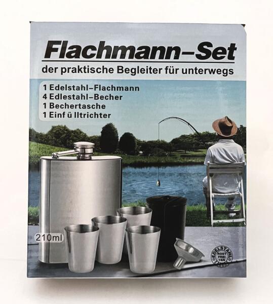 A szett tartalmaó: 1 db 7 oz-os gravírozható flaska, 4 db kispohár műbőr tokban.
